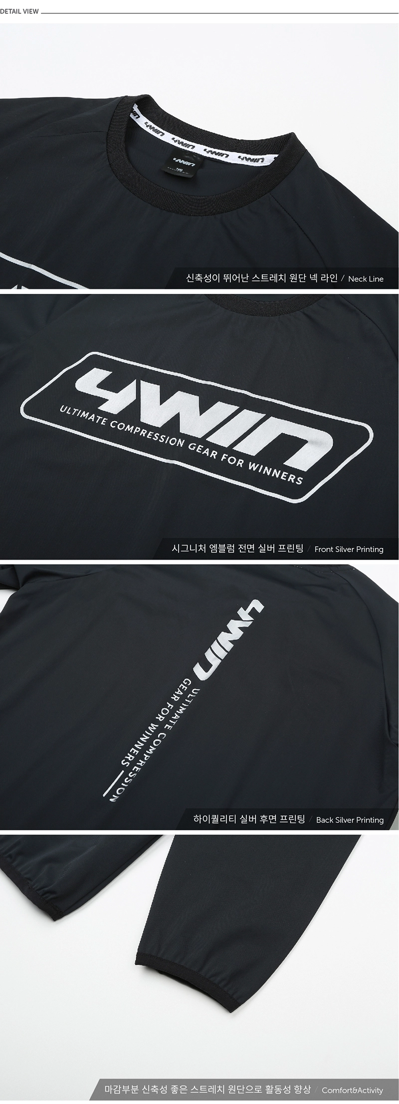 신축성이 뛰어난 스트레치 원단으로 활동성을 보장하는 긴팔 티셔츠