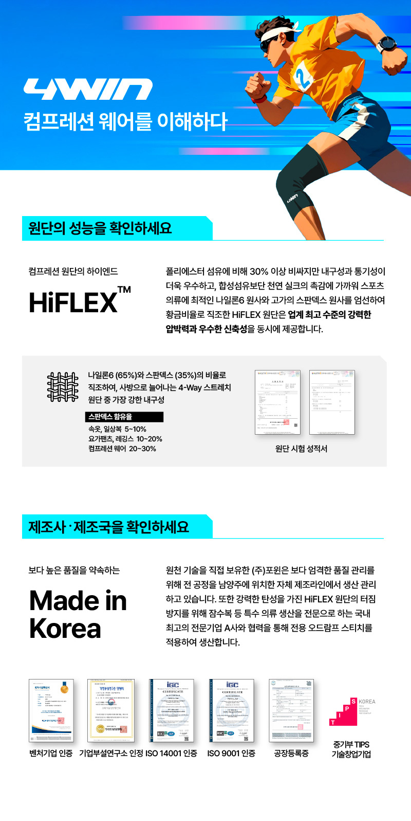 하이플렉스 원단의 강력한 압박력과 신축성으로 안정적인 상반신 컨트롤 유지